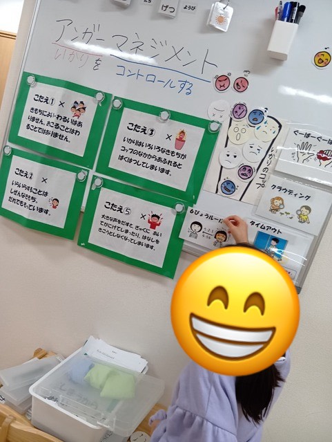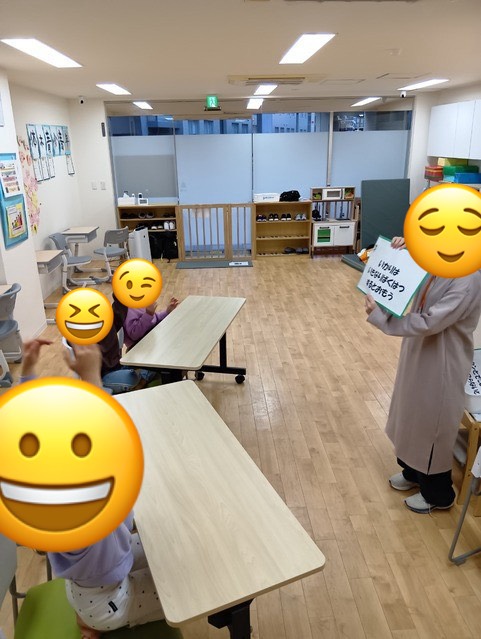 ↓児発の子どもたちは、怒りについての絵本を読んだり、歌に合わせて表情を模倣したり、表情のマッチングを行いました。