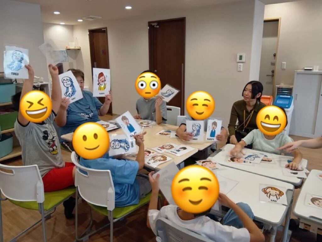 最初は少し照れたり、自信がなさそうにしていた子もいましたが、指導員と一緒に声を出してみると、少しづつ自信がつき一人で答えられるようになっていました。表情や絵カードをヒントにすることで、言葉だけでなく非言語的なやり取りの力も育まれている様子がありました。