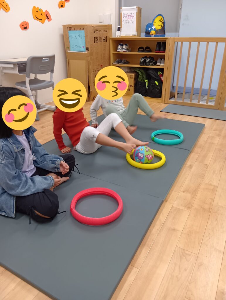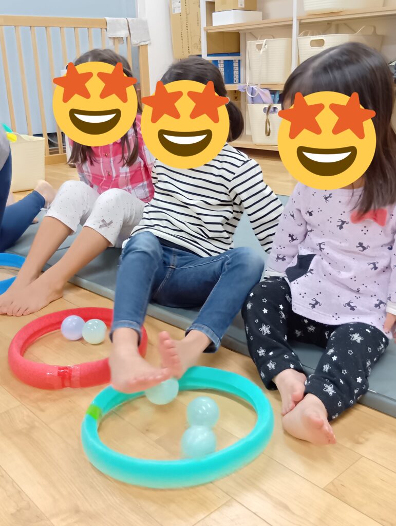 慣れてくるとスピードアップして、お隣のお友達のことも考えてパスできるようになりました。