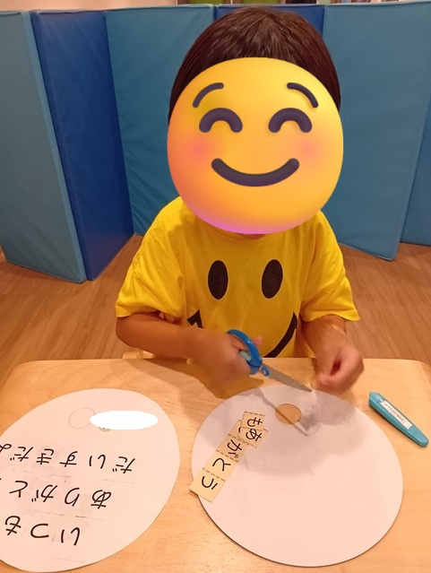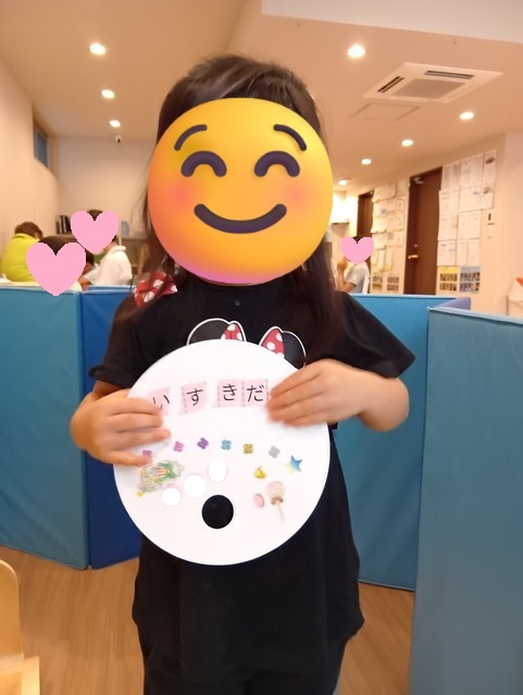 ↓児発ではひらがなカードを使ってメッセージを入れてもらいました。