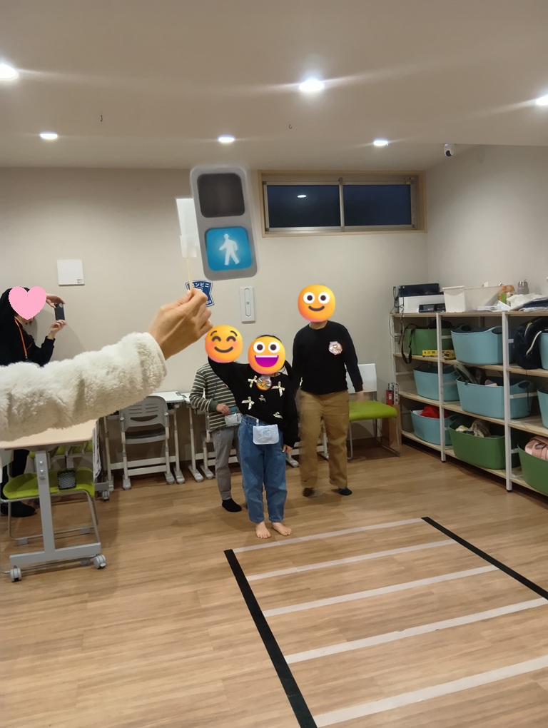 役割が決まった後は、いざお買い物です。行き先と買うものが書かれているミッションカードを受け取り、内容をチームで確認してから出発してもらいました。教室内に設置した横断歩道と信号をよく見て、交通安全係を先頭にお店に向かいます。商品係やお金係も、自分の担当の役割をしっかりこなしていました。「一番安い醤油」「ハンドソープ詰め替えの500ml」等指示の難しいものもありましたが、チーム内で協力して正しい商品を選ぶことができていました。お会計の際には高学年の子たちには「合計いくらかな?」「おつりはいくら渡せばいい?」等お金の計算もしてもらいました。次の週のお買い物本番プログラムに向けて、しっかり練習することができました。
