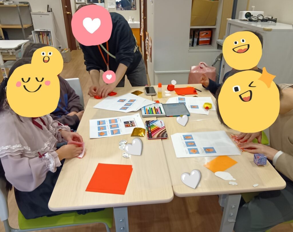 ▲児発では、モールやビーズ、シールなどを使ってお雛飾りを作りました。